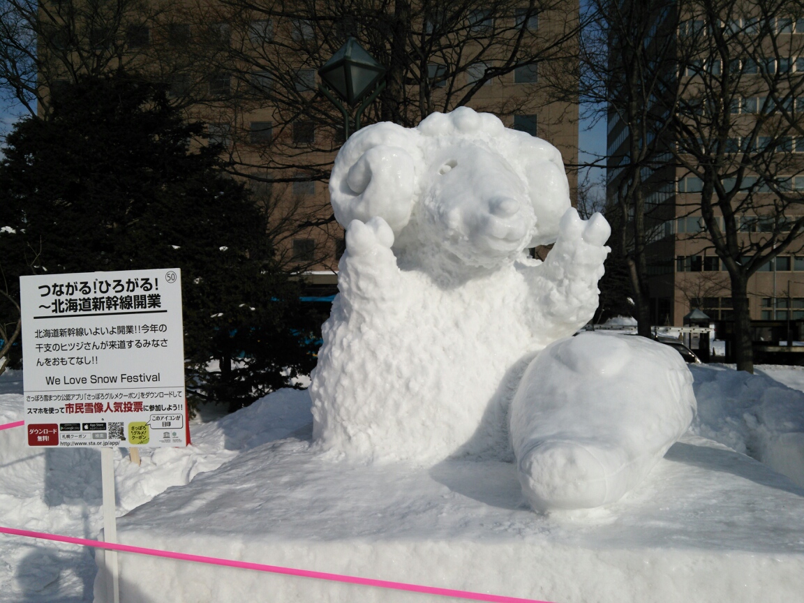ジンギスカンという名目で、羊の雪像を作るのはなんだろう。桜肉大好きとか言って馬の雪像作ったら怒られそうなのに。