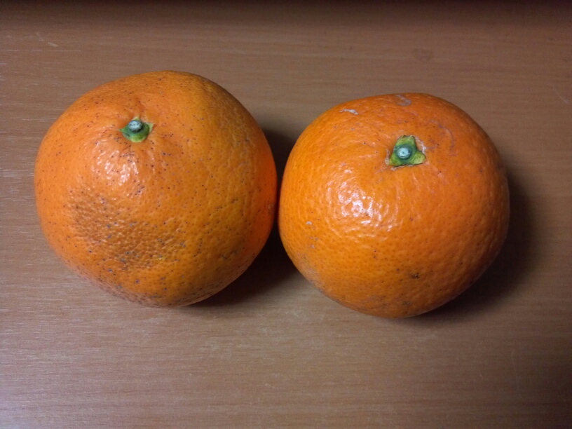 訳あり品とのことで、二個で150円と清見タンゴールにしては激安。