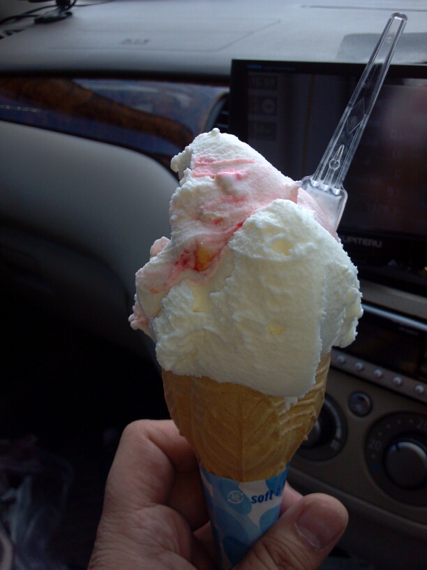 岩瀬牧場のアイスクリーム(しぼりたて&ストロベリーミルフィーユ)。