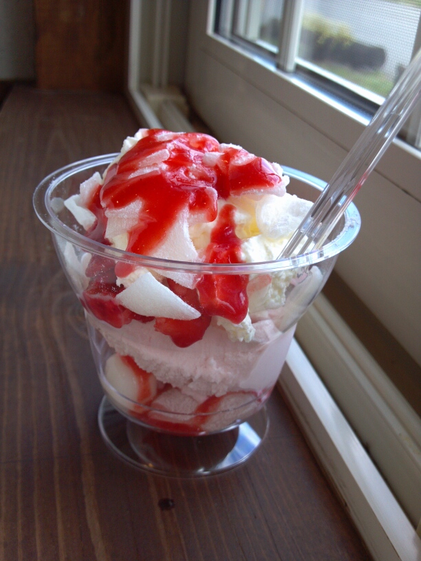 パフェは求肥と生クリームと凍ったイチゴのバランスがたまらなくうまいです。