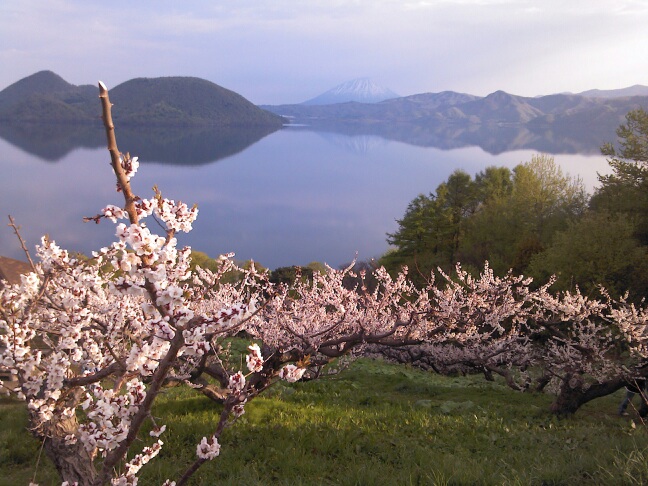 壮瞥公園の梅と洞爺湖と羊蹄山。部屋とワイシャツと私的な感じで。この時期ならではの景色なので早朝に見にきました。