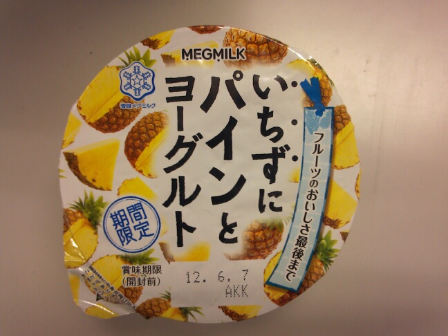 淡々と深夜のデザートを上げてみる。ヨーグルトにかなりパインが入ってます。想像通りの味で普通にうまいです。