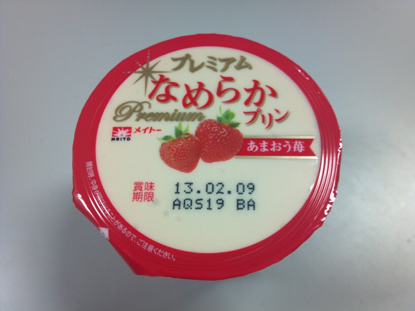 ノーマルなめらかプリンの味が思い出せないのでプレミアムかどうかはわからないですが、とりあえず苺味でした。