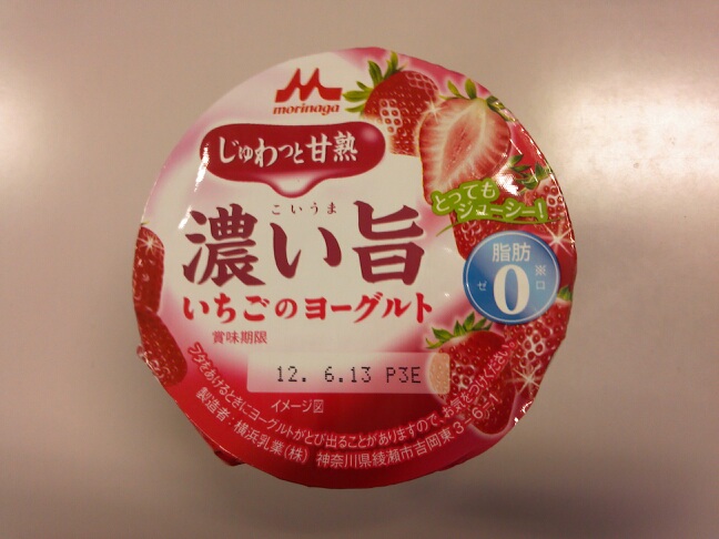 森永の濃い旨いちごのヨーグルト。いちごの果肉がゴロゴロ入った食べごたえのあるジョアみたいな感じです。まあまあです。で、じゅわっと完熟ってなんだろう。