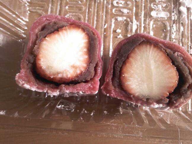 淡々と以前食べたデザートの写真を上げてみる。かど丸餅店のいちご大福の断面図。隙をみてまた買いに行きます。