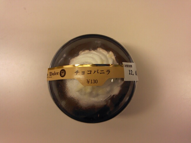 淡々と深夜のデザートを上げてみる。サンクスのチョコバニラというデザート。チョコ味のババロアみたいなやつにバニラのソースが埋め込まれてる感じ。かなり小さいですが、味が濃くてうまいです。