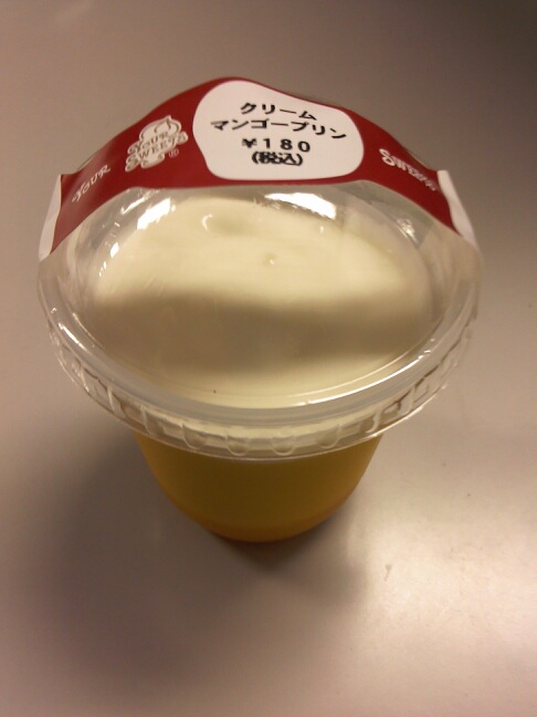 淡々と深夜のデザートを上げてみる。セイコマのクリームマンゴープリン。あっさり目でうまいですが、クリームはなしで30円安いほうが嬉しいかと。