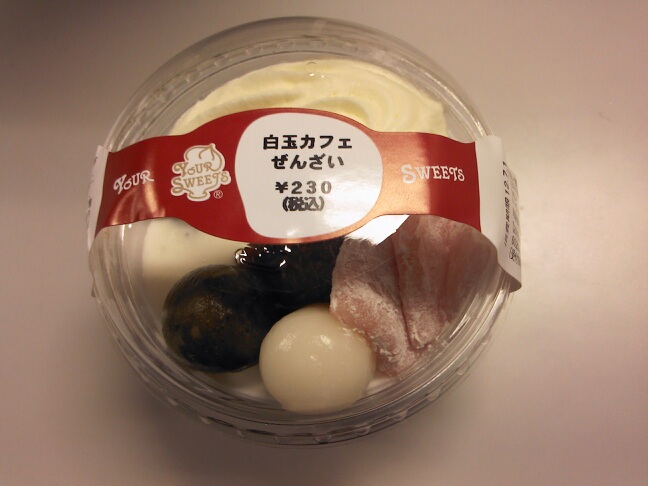 淡々と深夜のデザートを上げてみる。セイコマの白玉カフェぜんざい。コーヒーゼリーが入っているぜんざいでカフェぜんざいなのだと予想。求肥がうまい。ただ、全体のカフェ度は低め。
