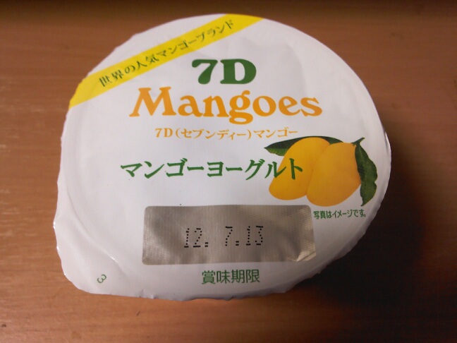 淡々と深夜のデザートを上げてみる。7Dマンゴーという謎のメーカーのマンゴーヨーグルト。味が濃いです。かなり好みのあじですが、メーカー名、聞いたことが無さすぎ。