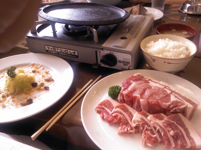 函館のグリル塩豚のCセット。5日間熟成した380グラムの塩豚の定食が1100円。腹一杯です。
