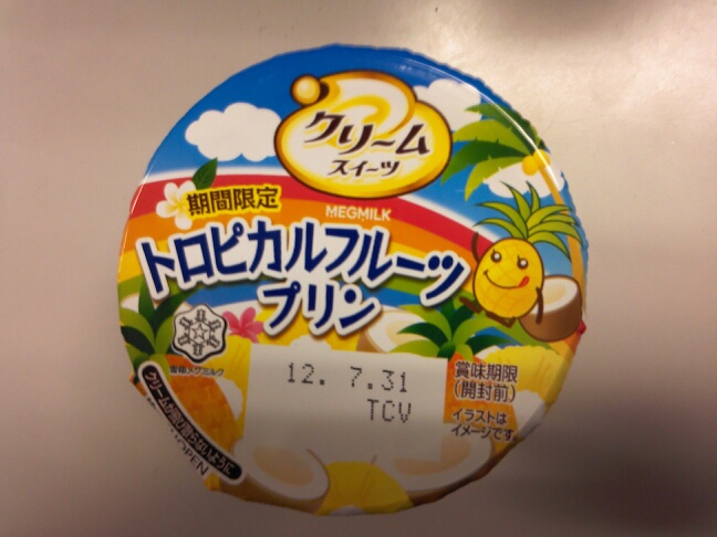 メグミルクのトロピカルフルーツプリン。今までに食べたことのない味。強いて言えばホロッと崩れる甘くて薄いフルーツ牛乳。謎の味。